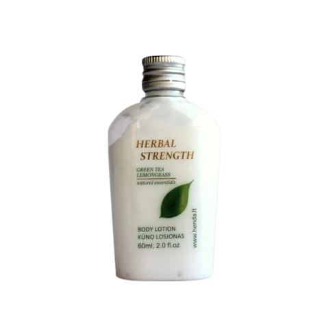 Herbal Strength kūno losjonas 60 ml – lengvos tekstūros, drėkinantis kūno priežiūros produktas, sukurtas komfortui ir aukštesnės klasės klientų patirčiai.